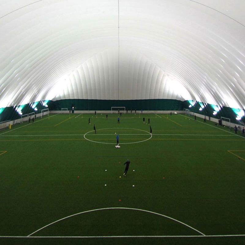 It should be known that the main material of soccer domes is membrane material, which is supported by air. It is low in construction difficulty and fast in construction, and has the advantages of relocation and recycling at any time. The cost performance ratio is higher, and the larger the area, the more cost-effective.